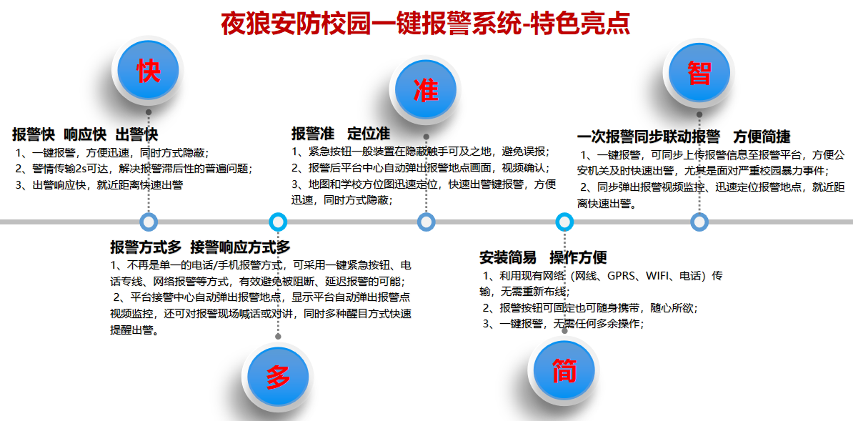 3月以来,各地陆续迎来开学,校园作为密集场所,安全问题一直受到家长及社会的广泛关注。驰通达集团夜狼安防品牌推出校园一键应急联网紧急报警方案,根据当前校园园面临的各种安保形势和要求,结合目前现有技术手段,统筹结合人防与物防,构筑校园安全高水平新防线。
